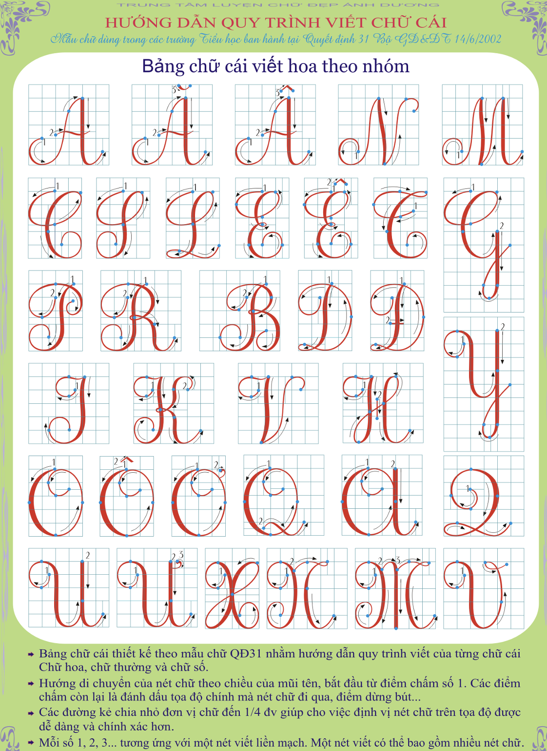 2.4 Mô tả cách viết từng chữ cái bằng cách sử dụng các mô tả dễ nhớ.